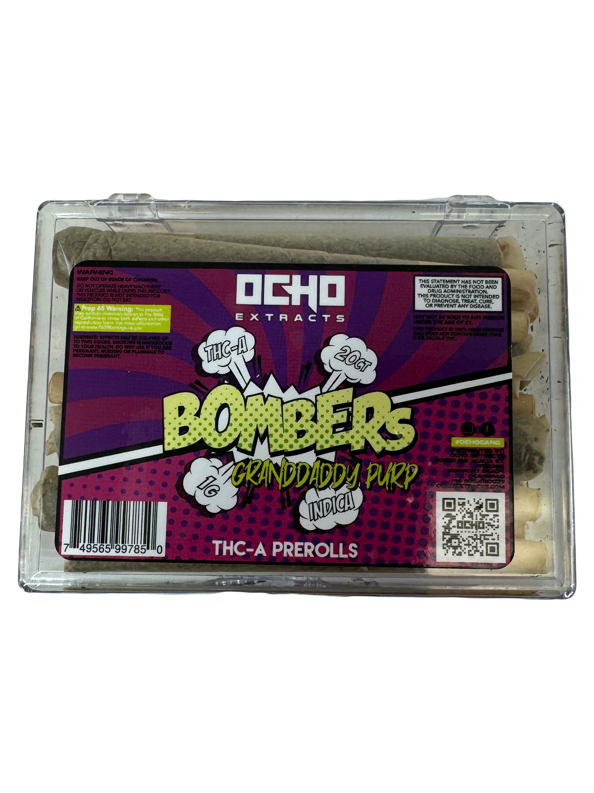 Ocho Bombers Preroll | 1G THCA w/o kief coating